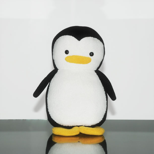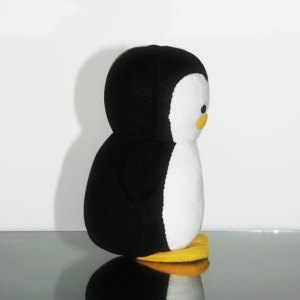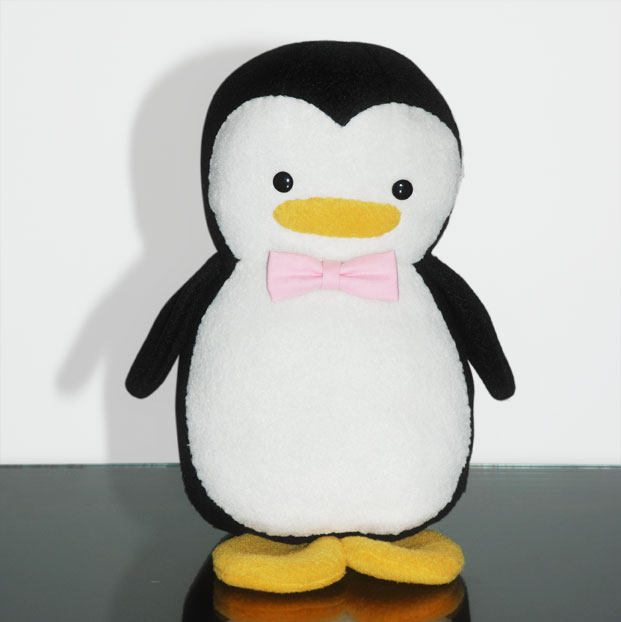 PENGUIN PLUSH: This is the plush doll before it is personalized. They stand about 10.5 inches tall and 5.5 inches wide. They’re made from black, white and orange fleece fabric and plastic eyes. The Penguins are huggable and lovable, sure to bring smiles to its recipients.