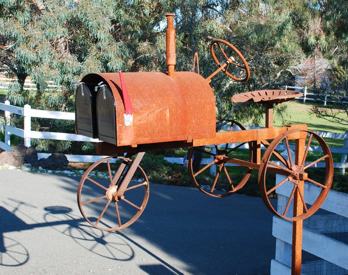 On a different note… I went on a walk with DH and Katsu, our dog, today. We walked through parts of our neighborhood that we had NEVER seen before. (We moved up here last June but haven’t gone exploring much.) Huge ranch style houses and horses and we came across the rusty mailbox above. 🙂 Makes ya think what other treasures are hiding around the corner.