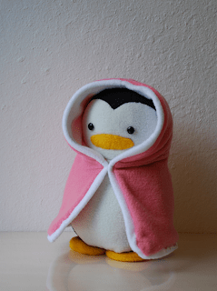 Here’s a cute pink cloak for a penguin princess personalized for M. I love personalizing these gifts for my clients. It’s always a pleasure working with my customers and making gifts specifically for them. It’s fun knowing no one else in the world has the same penguin plush or personalized pillow. 😀