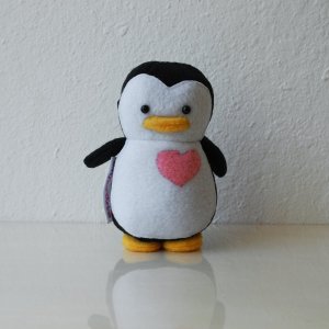 The photos above are of a personalized mini penguin. YES! A mini penguin is coming soon. 😀 Although, the beak will look more like the original My Dear Darling penguin. Hehe, I love how this personalized mini has lips and personality. The Mister is loving this new beak style more. What do you think?