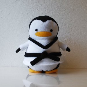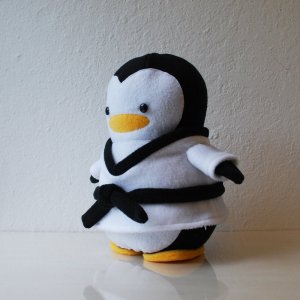 Good morning. ๐ Here’s a penguin plush doll wearing a Taekwondo uniform, ready to kick some butt.