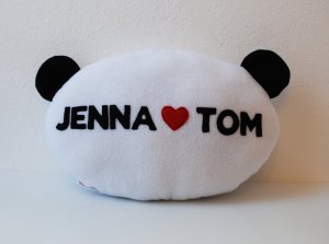 Here’s a photo of Jenna & Tom’s personalized panda pillow. ❤ Cute!