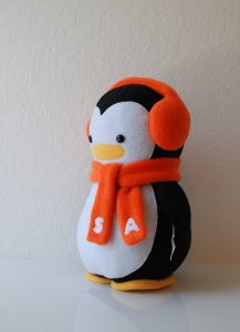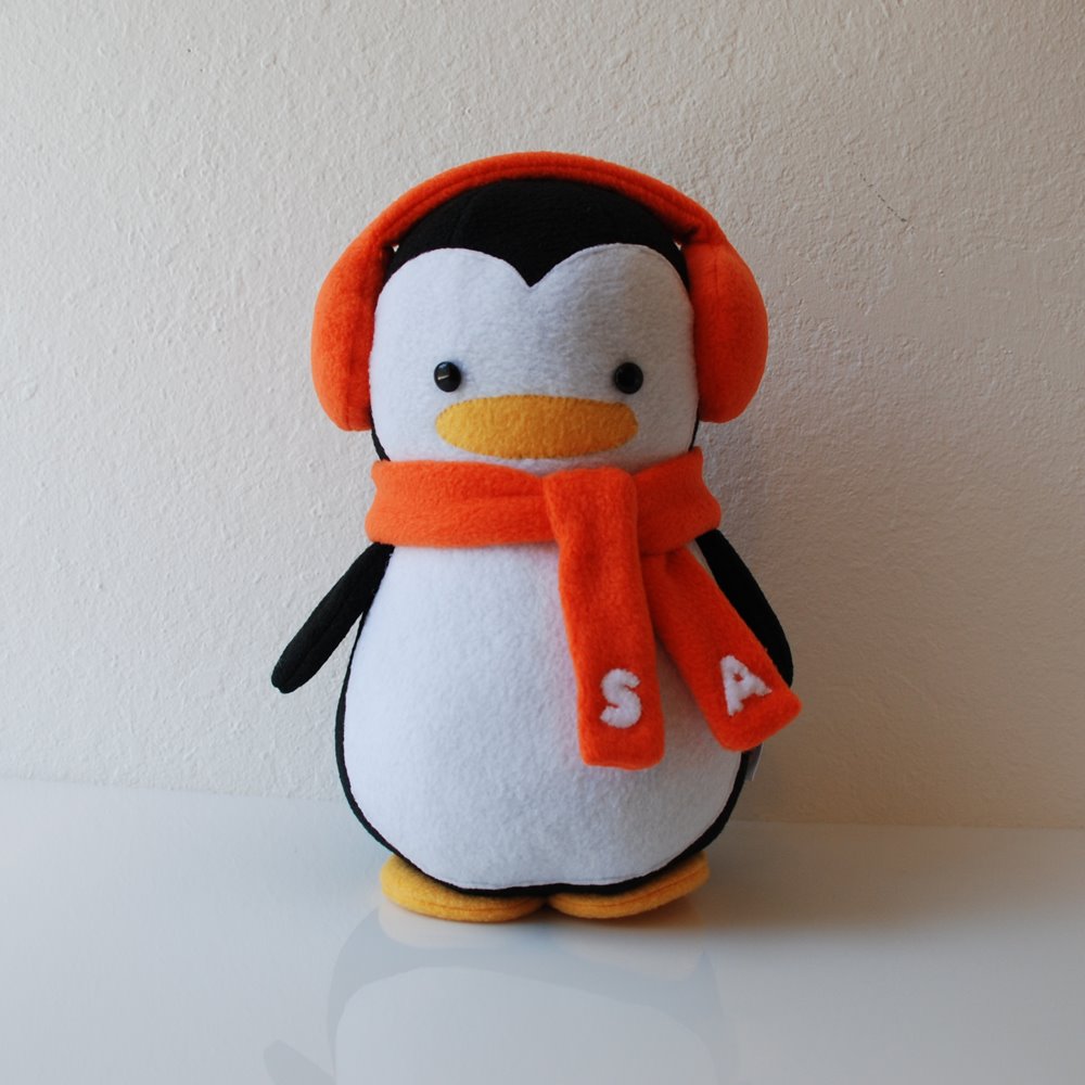 Here’s a personalized penguin with a cute orange scarf and earmuffs. I love how the accessories pop against the black and white penguin.