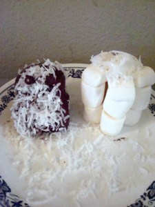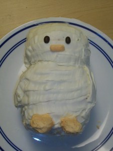 Mummy Penguin by KayIngredients: sponge cake, frosting, coffee bean