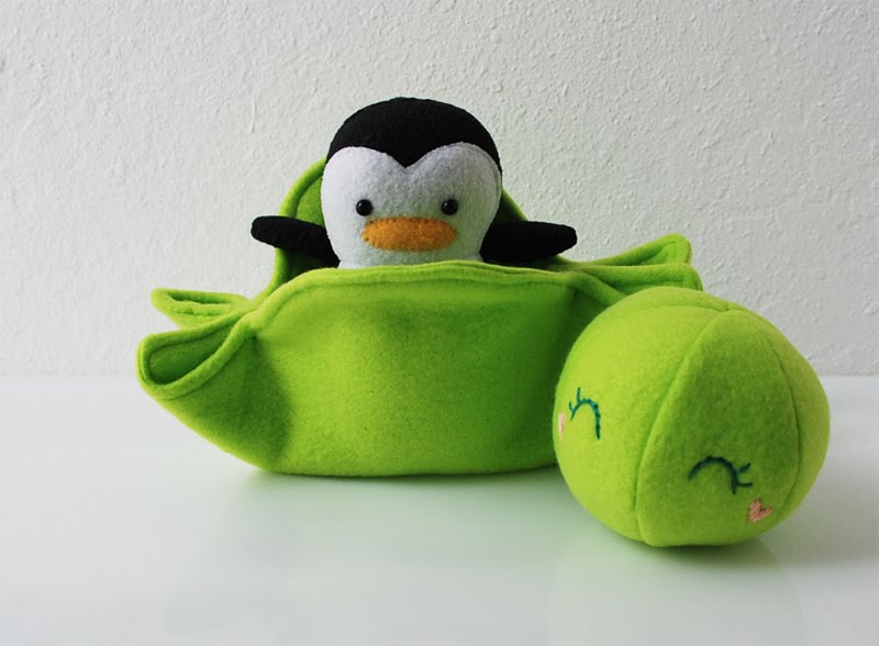 Last month, Brandon and I did some of our Christmas shopping at a couple of the local craft fairs. We invited our plush loving friend, Josh, along to Bizarre Bizarre. It was his first bigger craft show he’d attended. His eyes opened up wide anytime we’d come across a plush stand but by far, his favorite item was Mochi Studios’ Peas in a Pod. We couldn’t pull off buying it behind his back so we ended up waiting until Renegade where we went without him. I was so happy to find that Mochi Studios was a vendor there and we immediately bought this Pea in a Pod for Josh’s Christmas gift. He loved it. π
