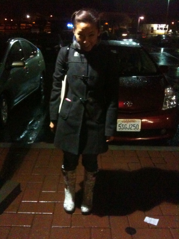 Last week, I got a UPS box delivered to my door. I wasn’t expecting any packages since I didn’t order anything online so I totally assumed that it was my Valentine’s gift from my husband. πŸ™‚ With all smiles, I opened the package (because it said my name on it) and discovered these CUTE rain boots! After reading the packing list, I realized they were from my BFF! She had sent them to me since it’s been raining cats and dogs here and I didn’t own a pair of rain boots! How sweet and thoughtful is that?! I immediately put them on and wore it around the house until my husband came home and we went out to Trader Joe’s… of course, in my new rain boots. πŸ˜€