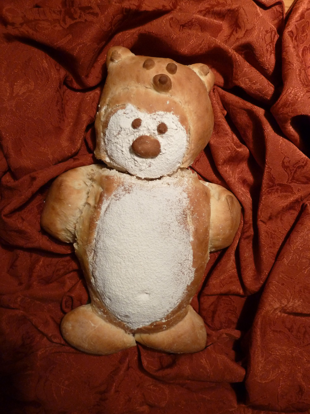 Ingredients: flour, sugar, salt, yeast, mayonnaise, water, egg