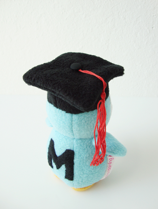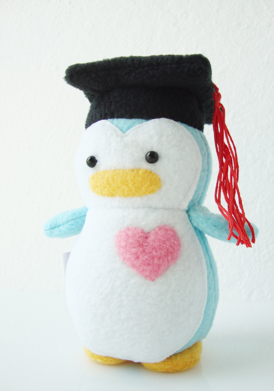Graduate Mini Penguin M by Akiyo Pham Posted on August 17, 2011February 18, 2021 mini penguin plush personalized with a mini graduation cap, a pink heart and a black M I thought I’d pop in and share a personalized mini penguin I made for a graduate of 2011. 🙂 Like Loading... Related