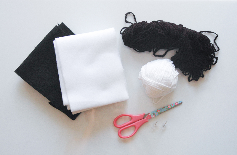 felt, yarn, scissors and thumbtacks to hang