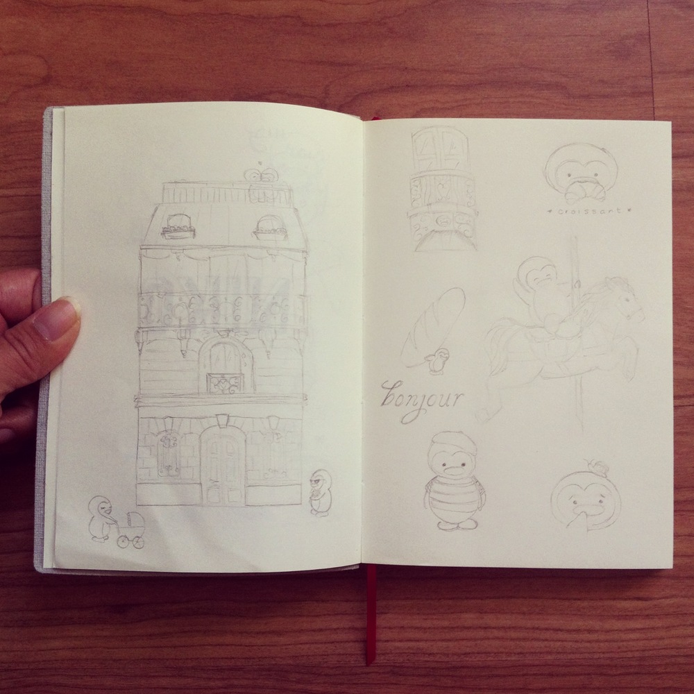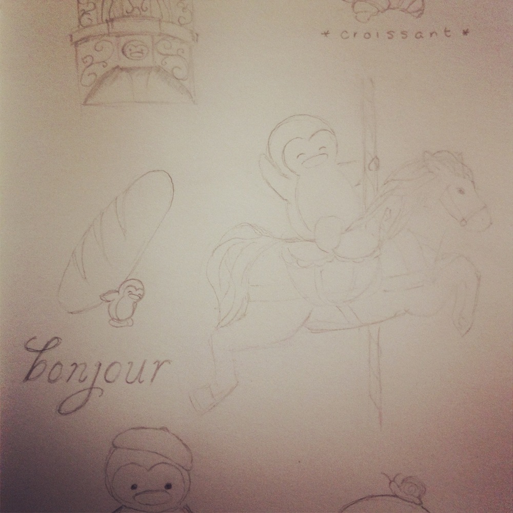 This week, my penguin doodles were inspired by my wish to one day visit France. 🙂 Have you been? The architecture, the culture, the food looks so dreamy in all the photos and movies. One day I shall visit. One day. 😉
