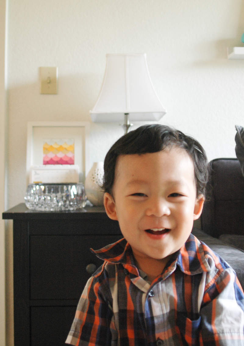 The weekend before we worked on Bruce’s room, we hung up the picture ledge above the sofa bed. At first, I debated whether or not to hang anything on the clean white walls but the boxes and boxes of picture frames and tchotchkes were haunting me (and taking up space) so we decided to put them up. I’m happy we did since it made it feel more like home. Our home.