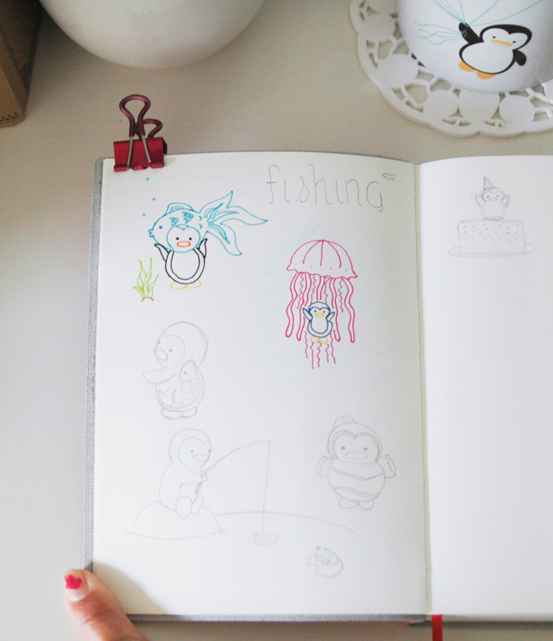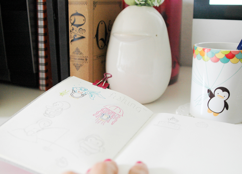 This week’s doodle theme came from my friend, Roe, which was “fish” or “fishing”. Haha, I can’t remember. Courtney and I were trying to fill a whole page with the theme but I was only able to draw two penguins. The rest I doodled throughout the week. 🙂