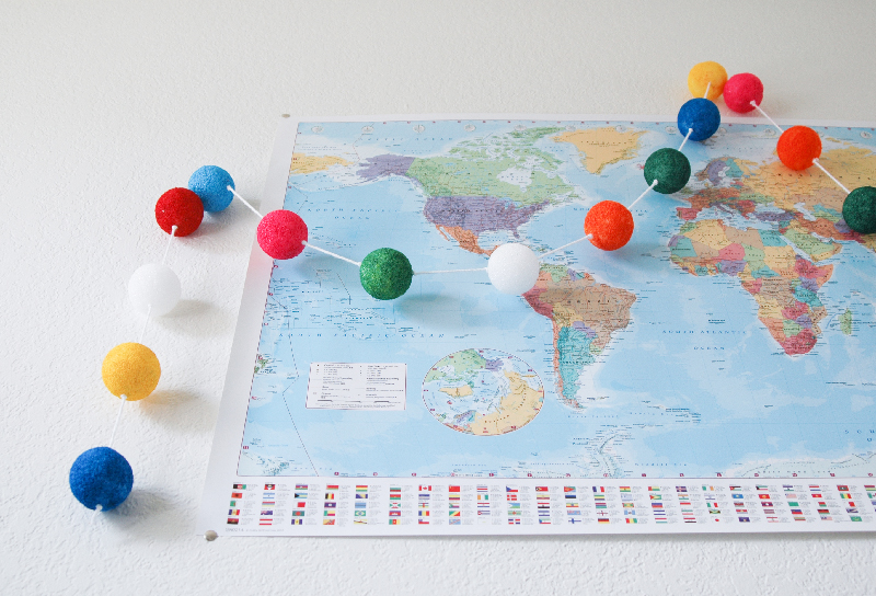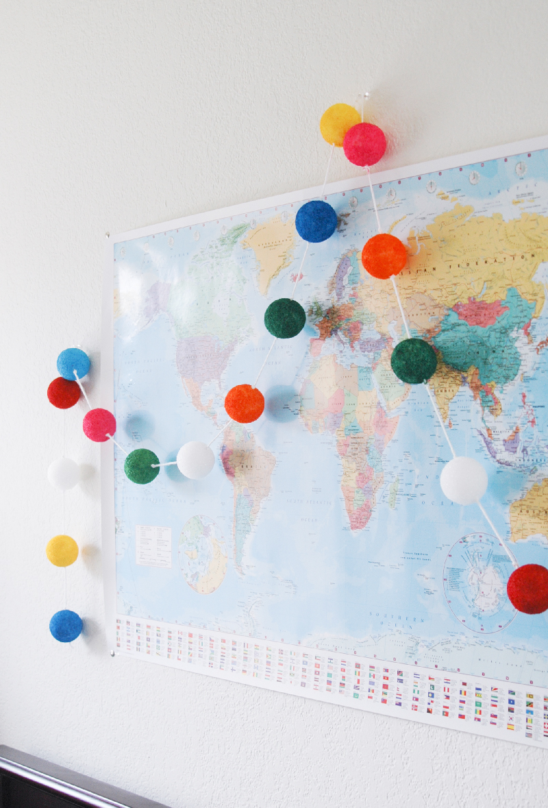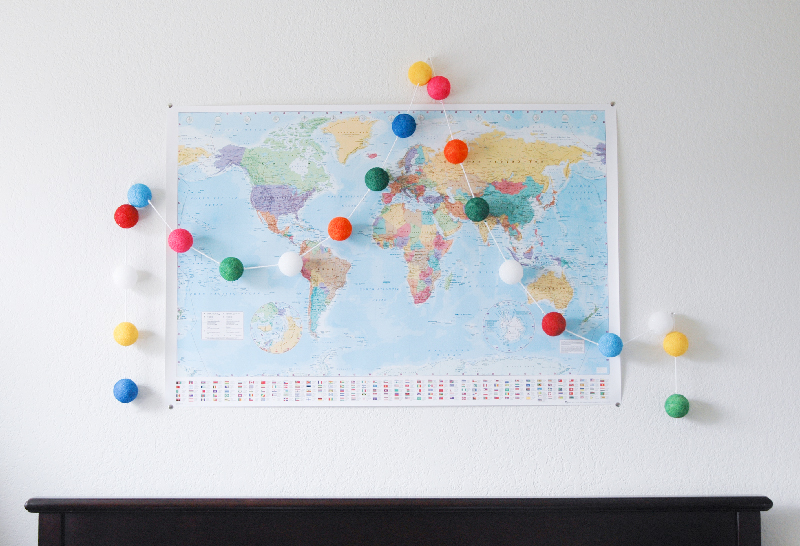 And here it is above Bruce’s bed with his 89 cent world map! (Yes, 89 cents!! 😀 ) I love it!