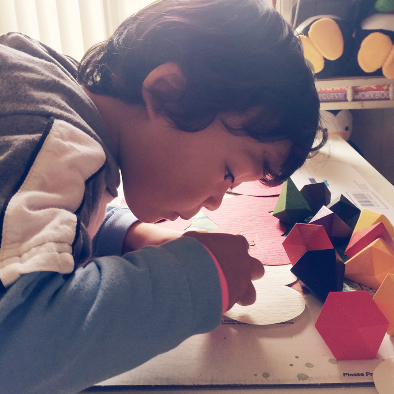 Bruce made cards for his Valentines which consisted of tons of Aunties (he wouldn’t specify which), Ji-ji (grandpa), Nana, Daddy, Uncle Larry, and… himself. He’d tell me what to write to each person including his own: