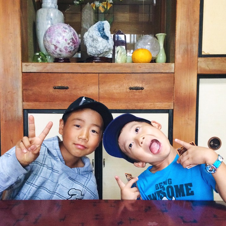 During our visit, Bruce would sneak into my Uncle and Aunt’s house every morning. (I didn’t know this until a few days in. Haha!) My Uncle would be eating his breakfast with a cup of coffee topped with a scoop of ice cream and my Aunt would be watching the morning news with him. He would slide the door open, take off his shoes, and show my Aunt his latest gift he’d received the day before. He’d then spot the ice cream floating in my Uncle’s coffee and some how communicate (language barrier) that he wants a scoop too. So yes, Bruce got a scoop of vanilla ice cream every morning and ate it next to my Uncle. Haha! I guess that formed a little bond between them and he’d let Bruce feed the koi whenever we were there during feeding time. β€