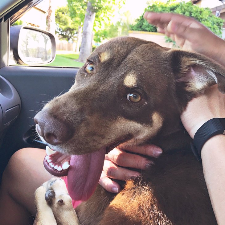 On Brandon’s birthday, we found the sweetest dog running around in the streets. Brandon opened his door and he hopped right in. Bruce wanted to keep him and name him Friendly but we found the owner an hour later. His fur is still all over my passenger seat so we’re reminded of him every day. π Hope he’s doing well!