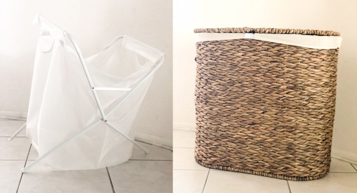 We had this cheap Ikea hamper for 7 years (maybe more?!) and it was on it’s last leg literally. Haha! So I finally upgraded to this sturdy double hamper and it’s been so nice having most things already separated.